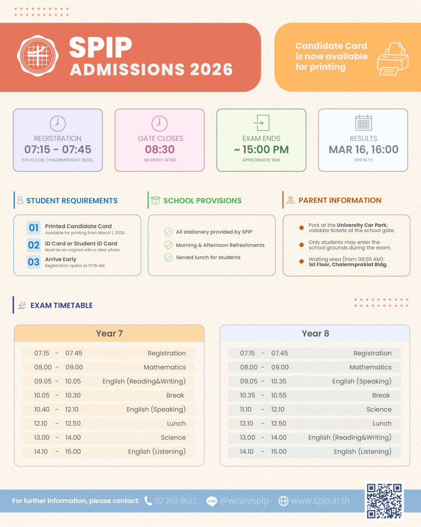 An enrolment fee and/or tuition fee must be paid in accordance with the instructions provided https://www.spip.in.th/fees-tuition/. The enrollment fee must be paid in full.