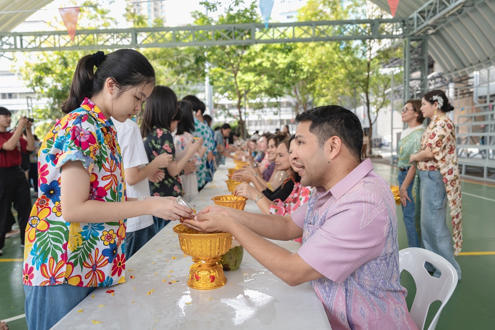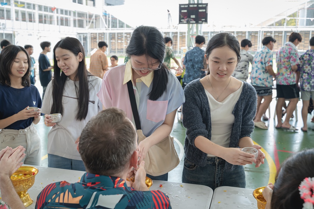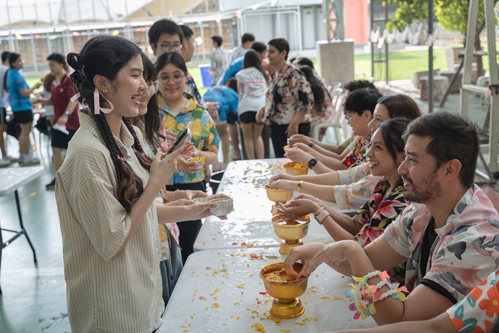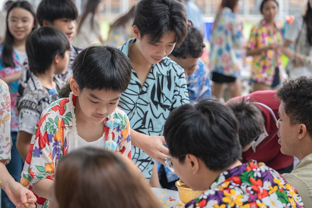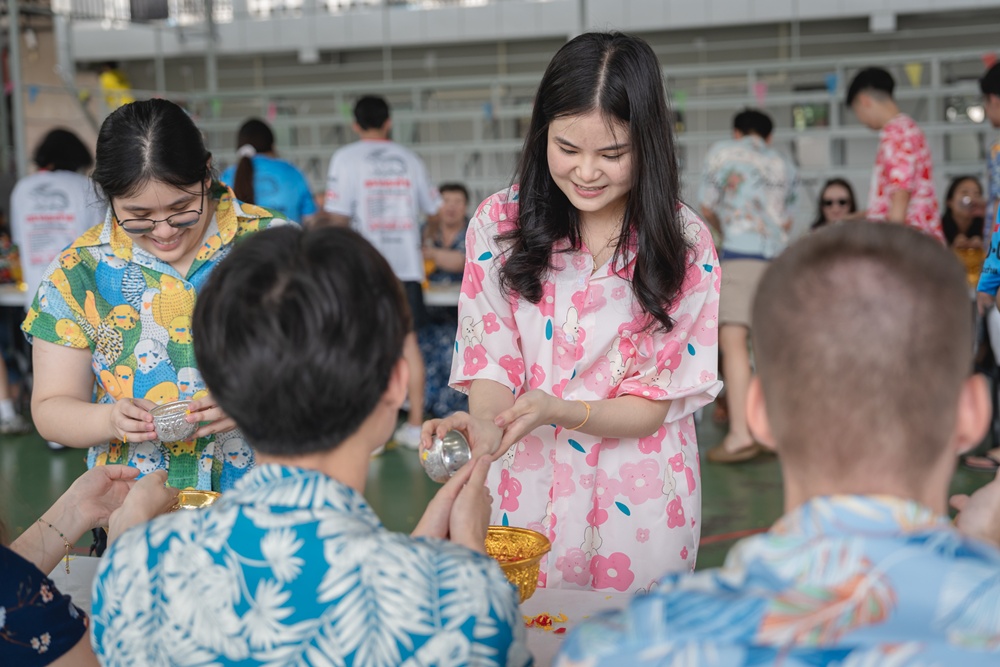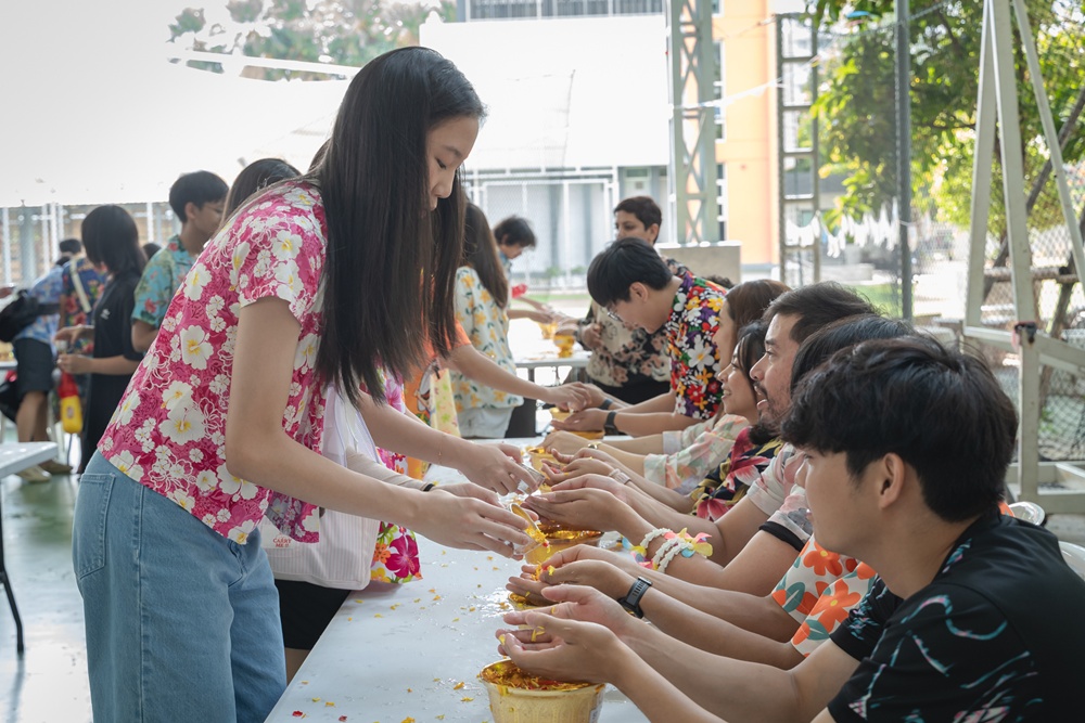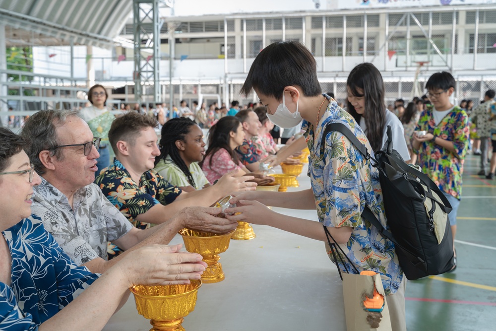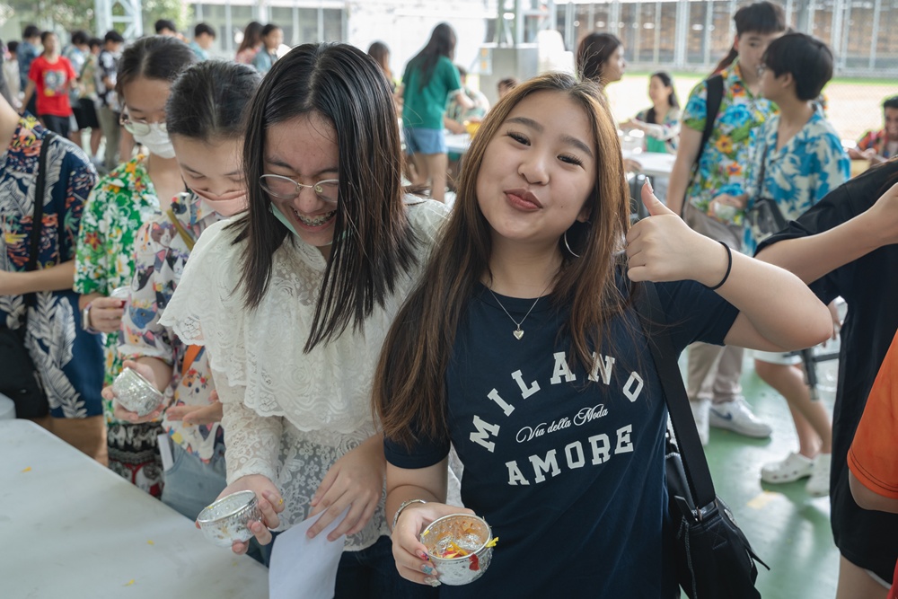 From the lively sounds of the Songkran orchestra to the elegance of Thai folk dance, the spirit of Thai culture was everywhere. Students also took part in the meaningful tradition of gently pouring water on teachers as a blessing for the Thai New Year.