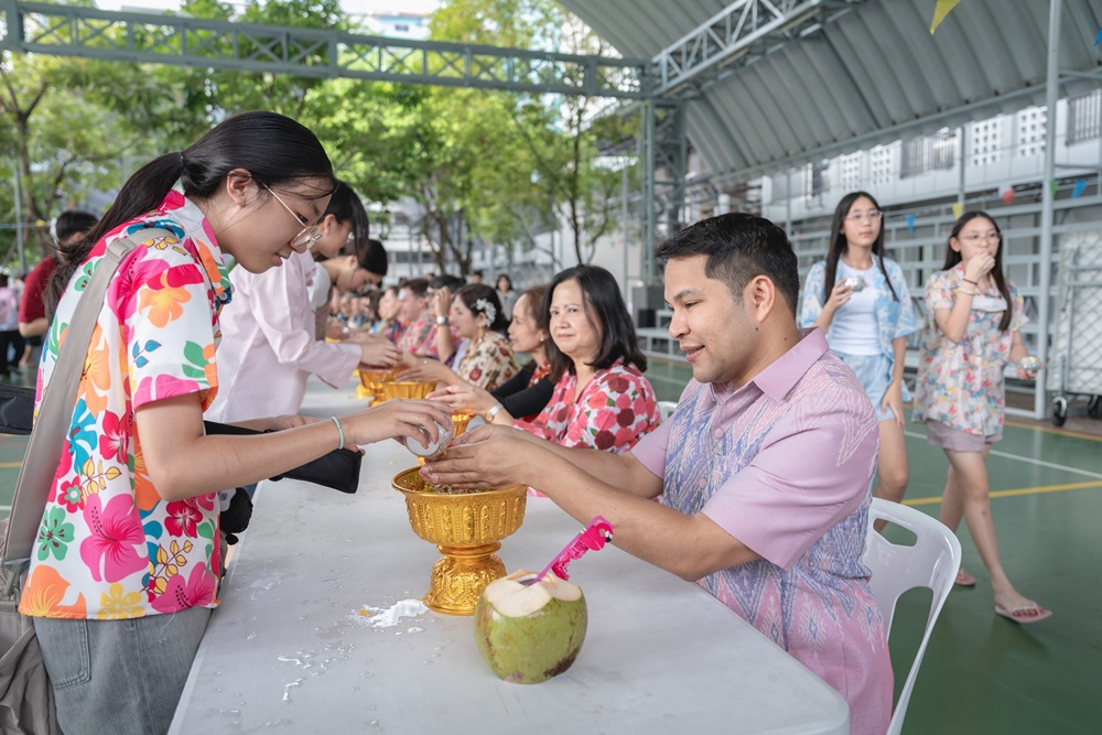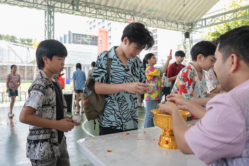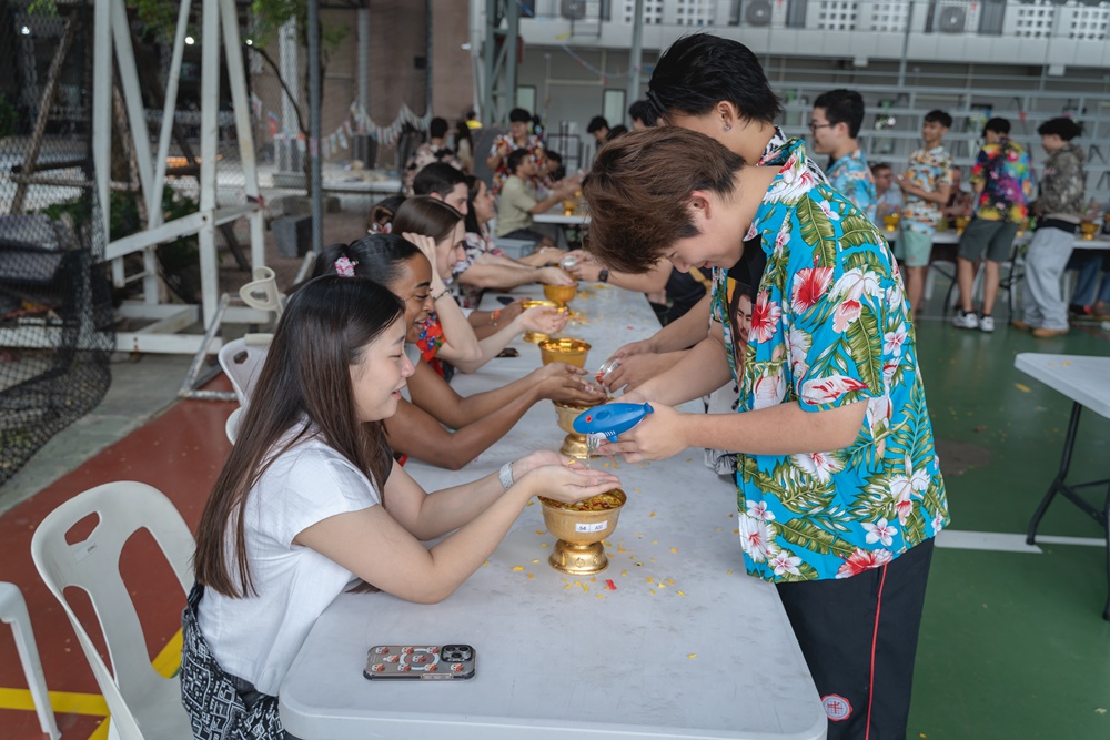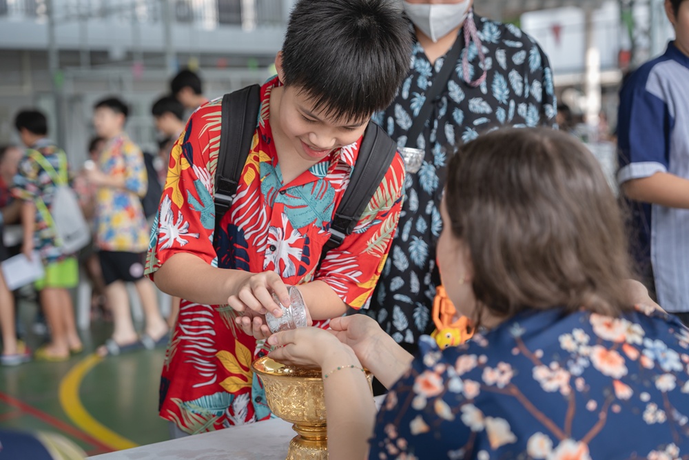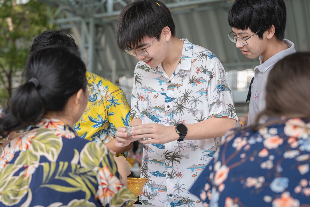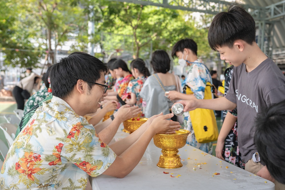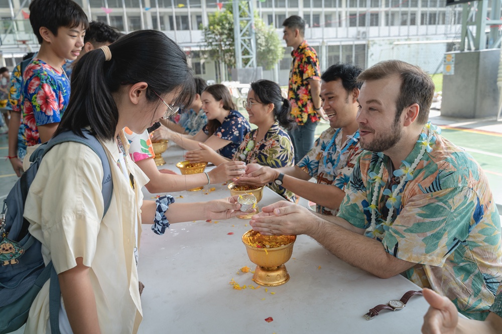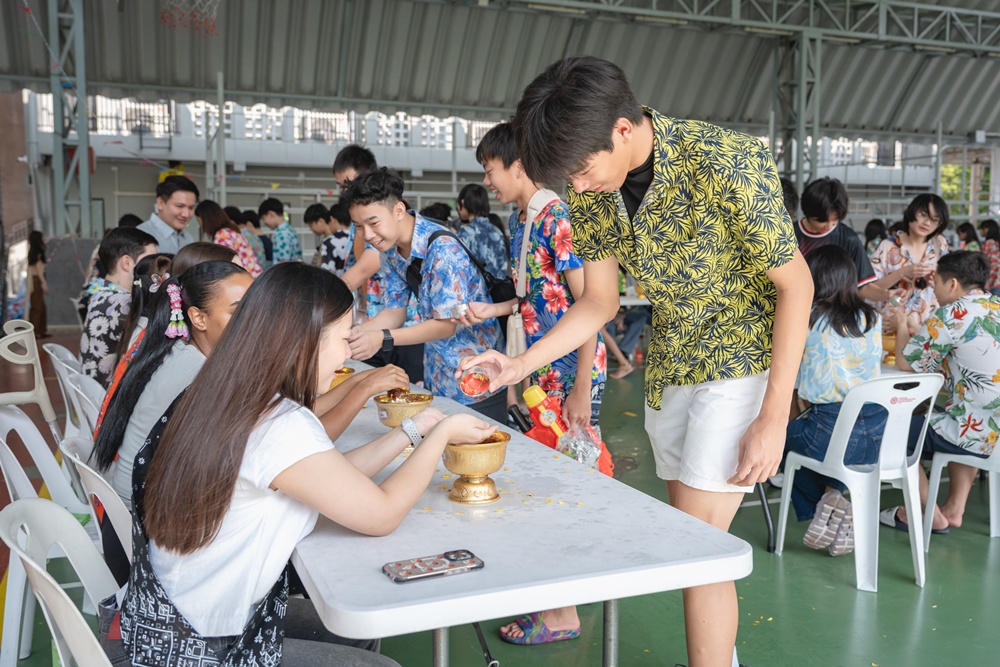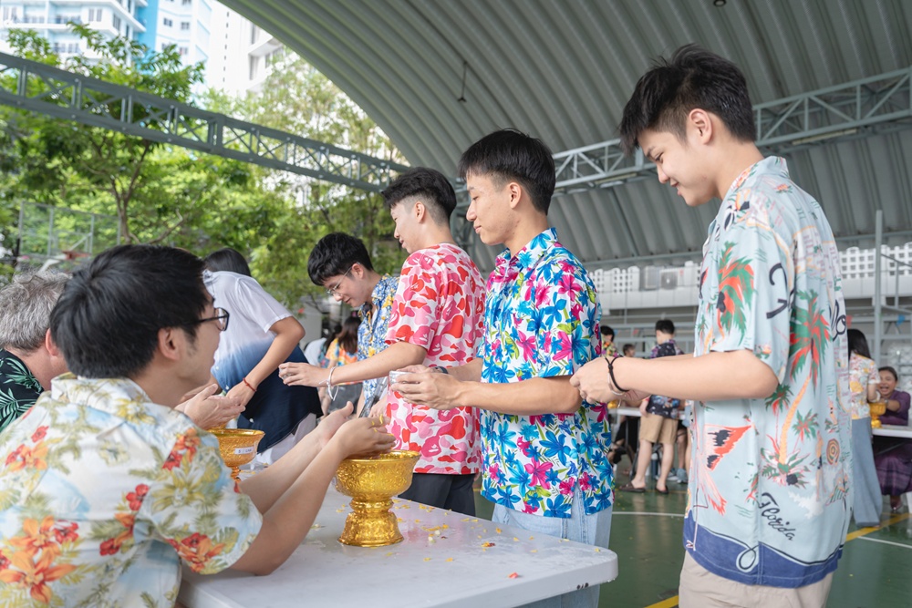 From the lively sounds of the Songkran orchestra to the elegance of Thai folk dance, the spirit of Thai culture was everywhere. Students also took part in the meaningful tradition of gently pouring water on teachers as a blessing for the Thai New Year.