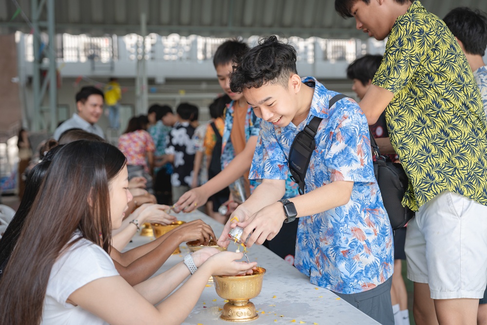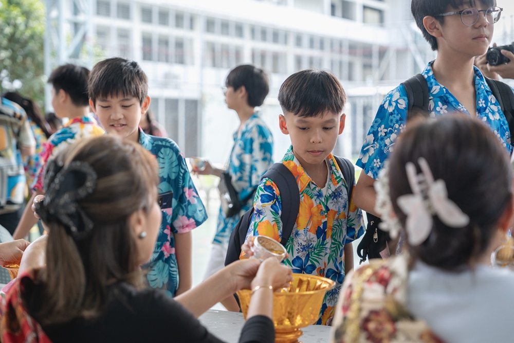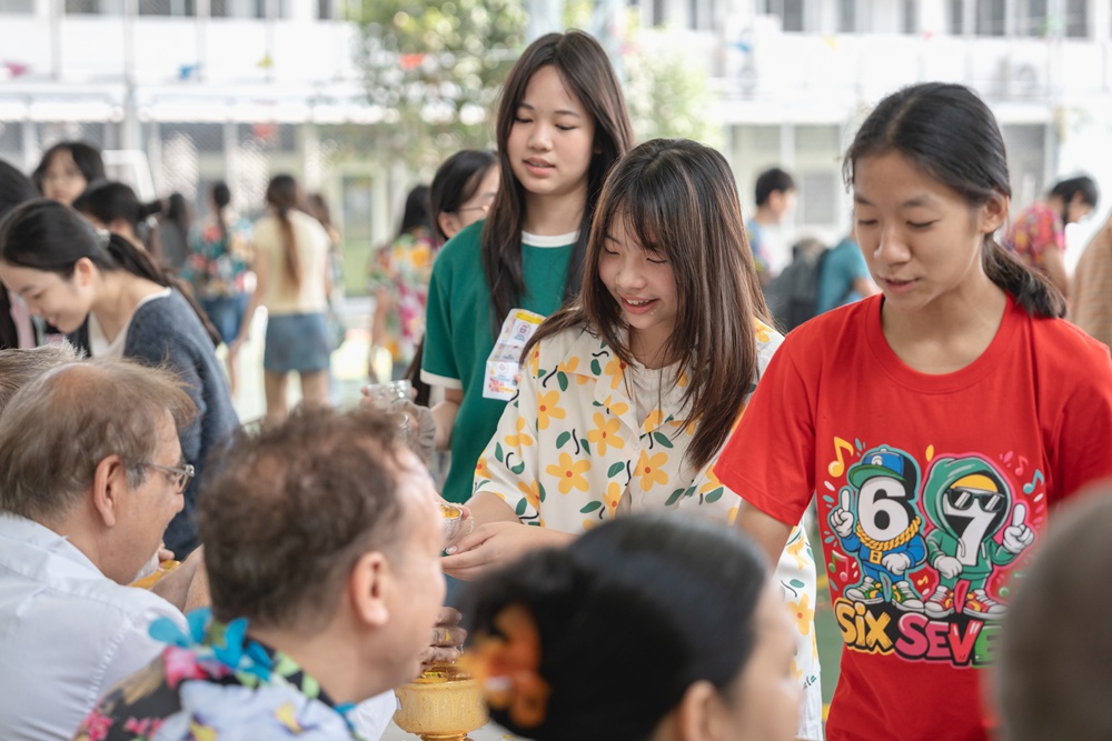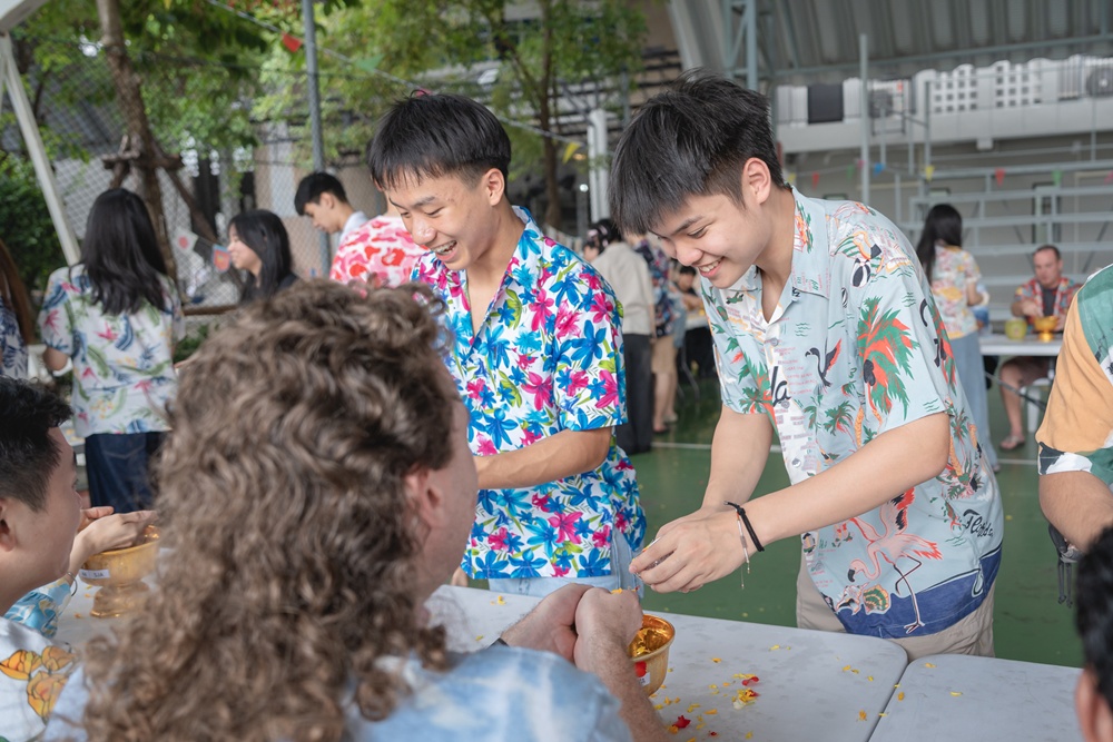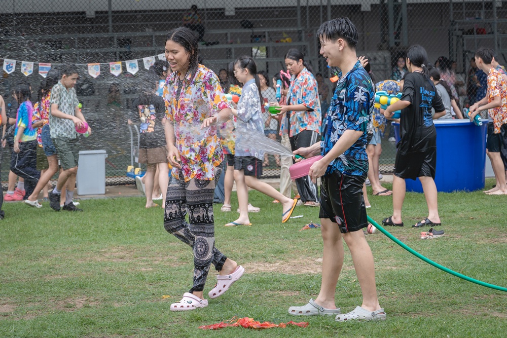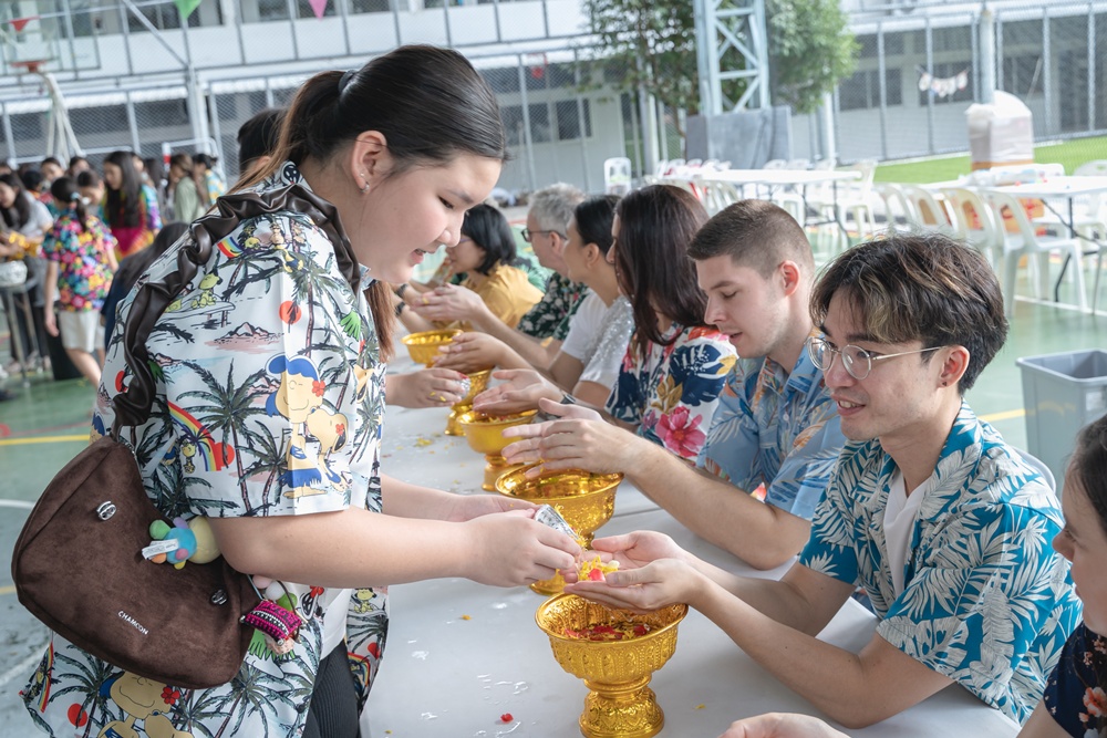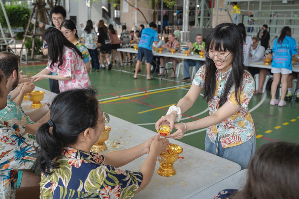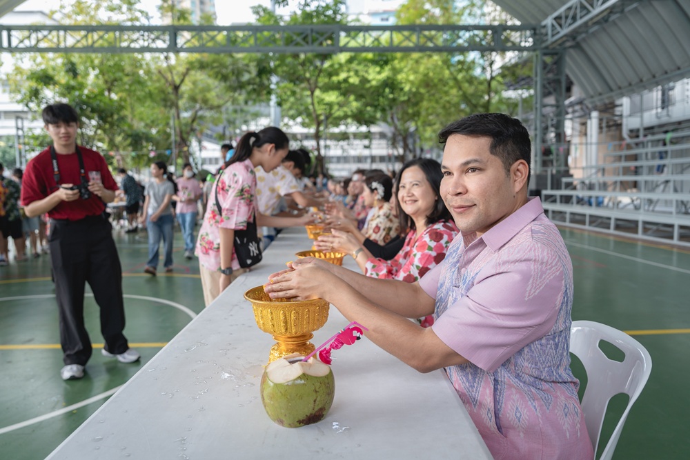From the lively sounds of the Songkran orchestra to the elegance of Thai folk dance, the spirit of Thai culture was everywhere. Students also took part in the meaningful tradition of gently pouring water on teachers as a blessing for the Thai New Year.