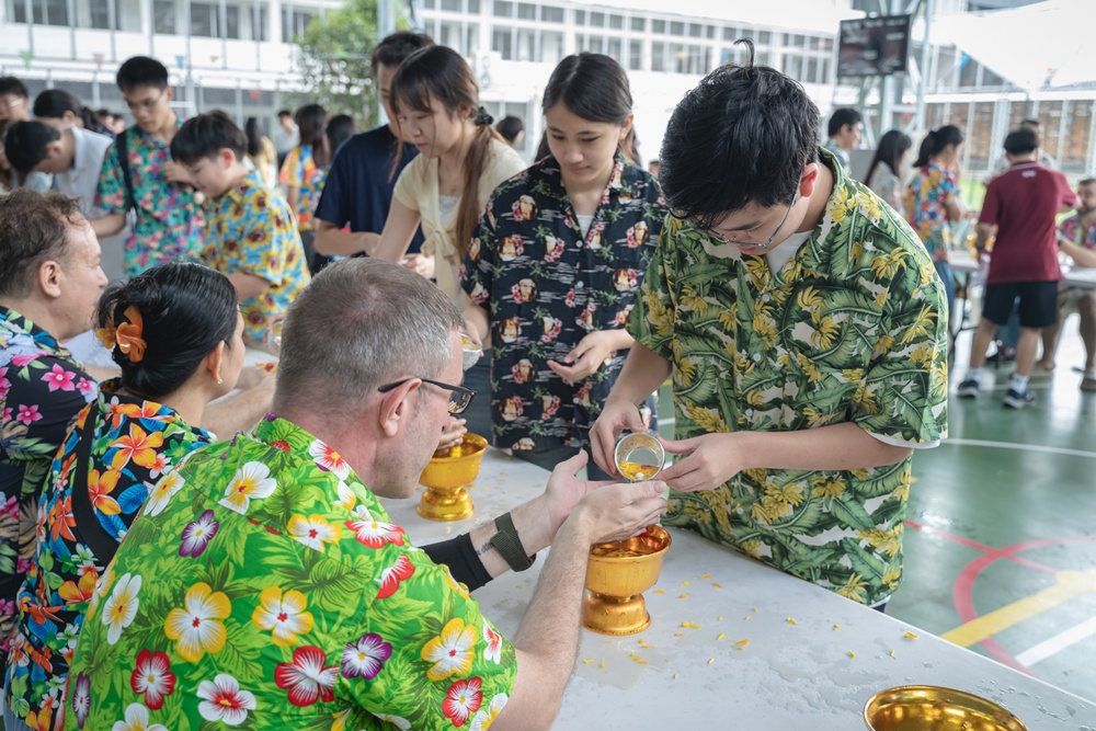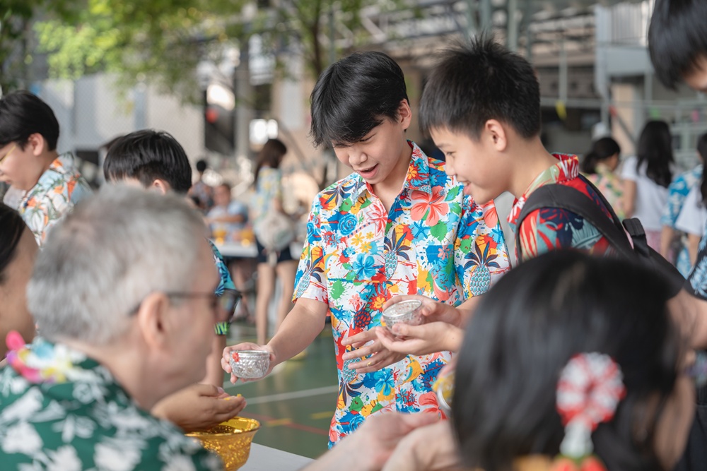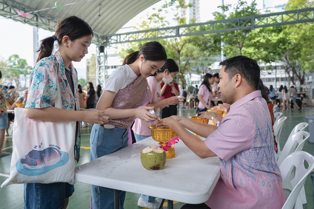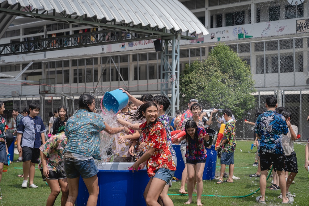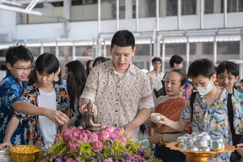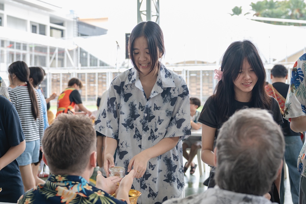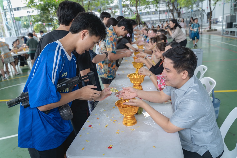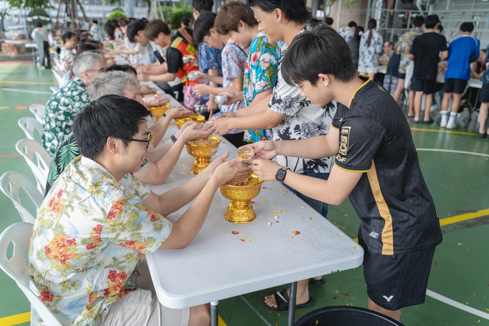 From the lively sounds of the Songkran orchestra to the elegance of Thai folk dance, the spirit of Thai culture was everywhere. Students also took part in the meaningful tradition of gently pouring water on teachers as a blessing for the Thai New Year.
