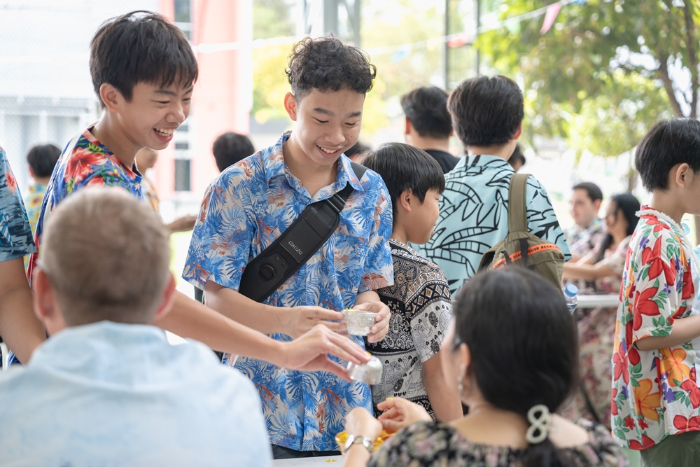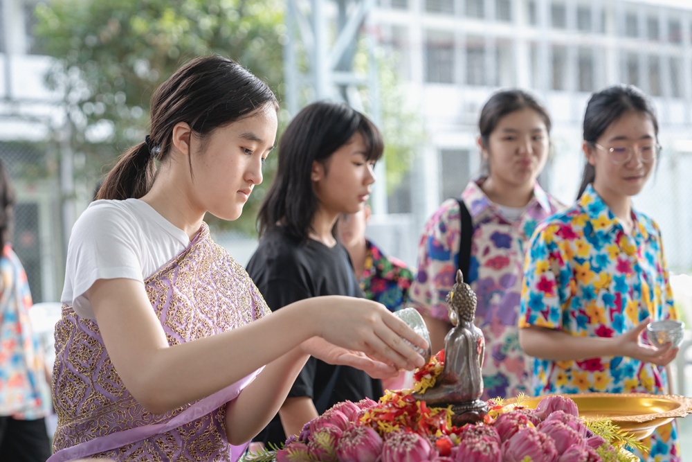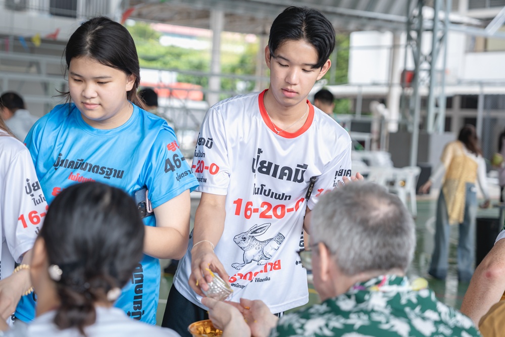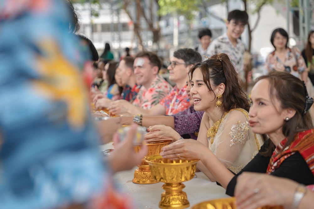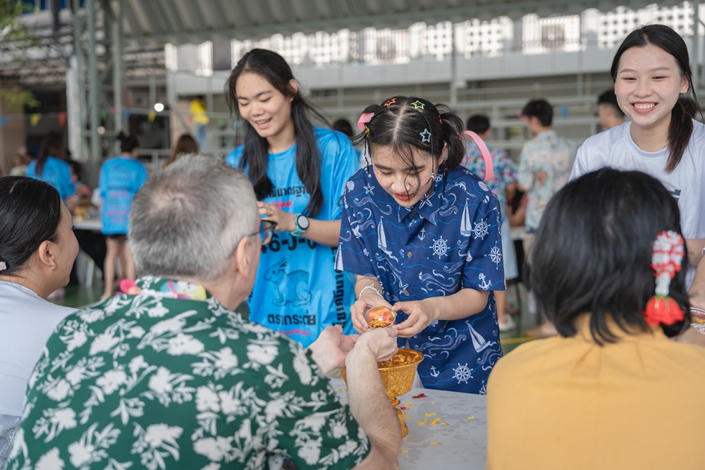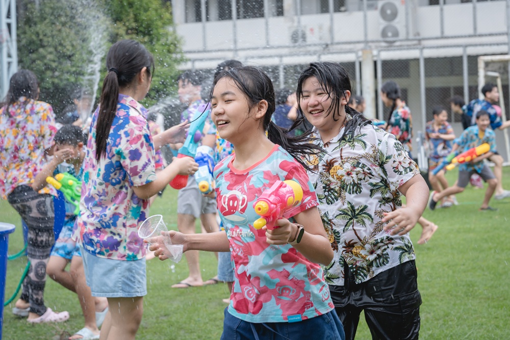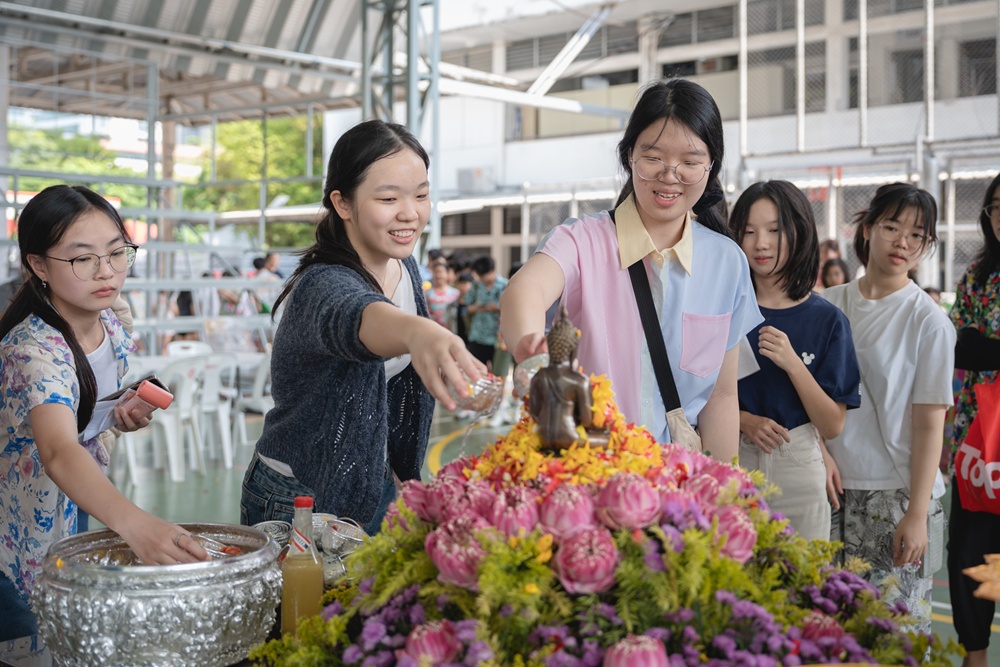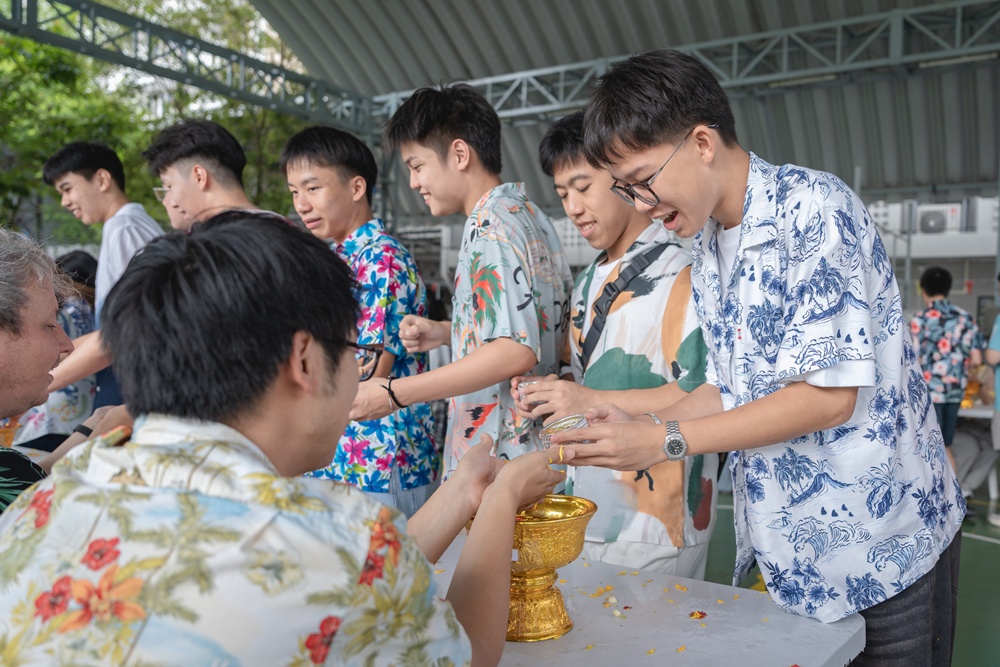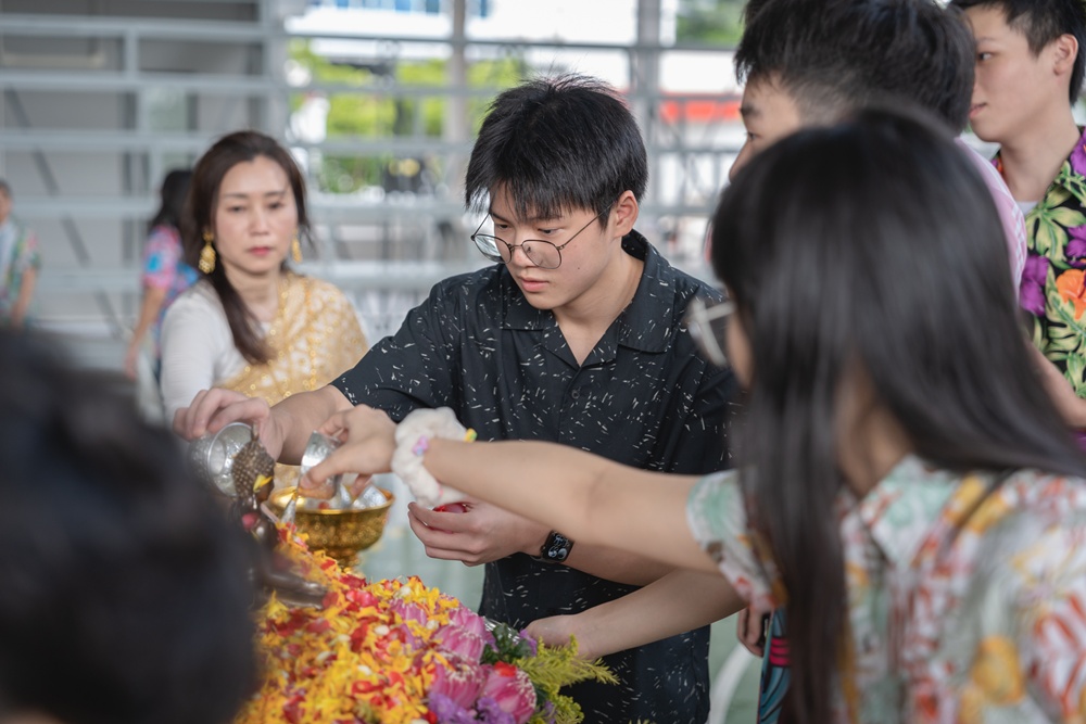From the lively sounds of the Songkran orchestra to the elegance of Thai folk dance, the spirit of Thai culture was everywhere. Students also took part in the meaningful tradition of gently pouring water on teachers as a blessing for the Thai New Year.