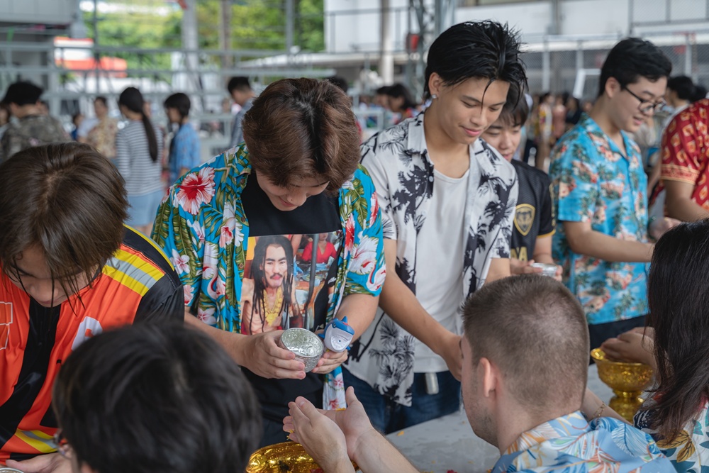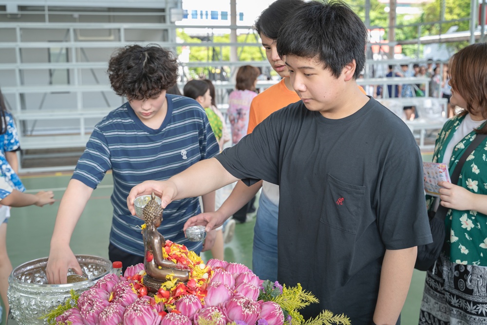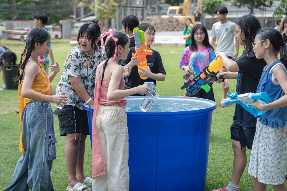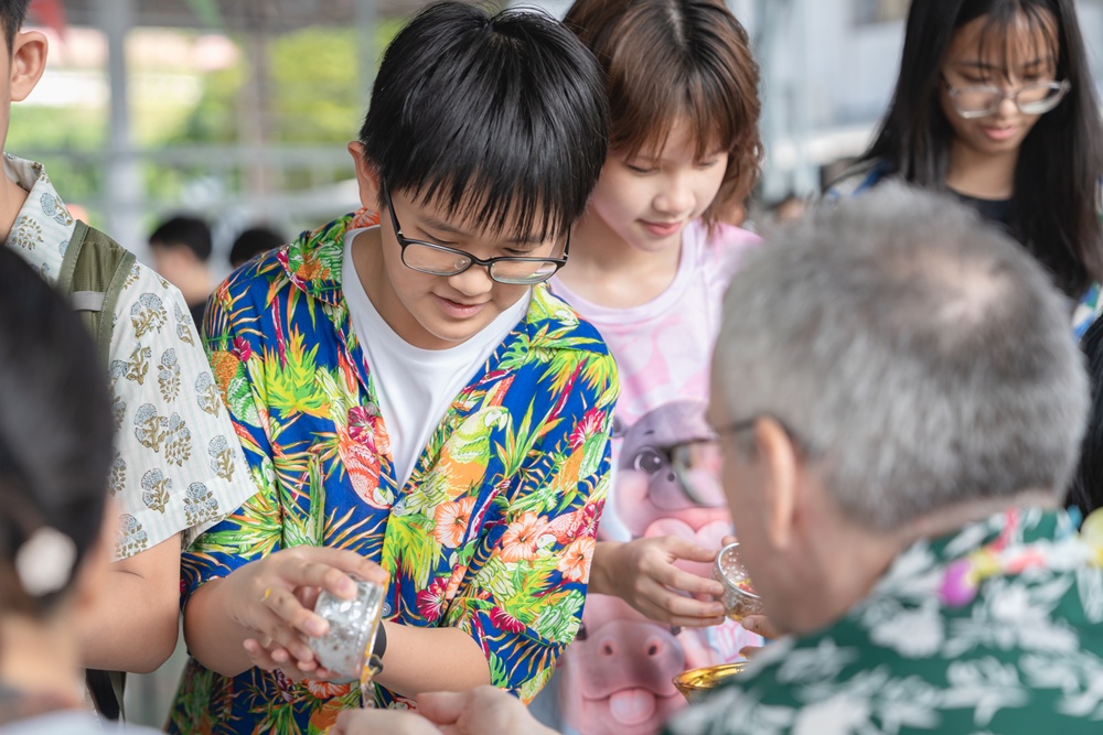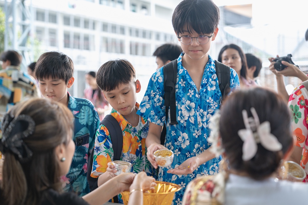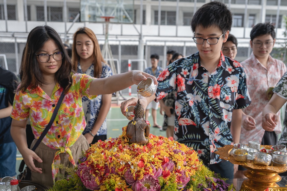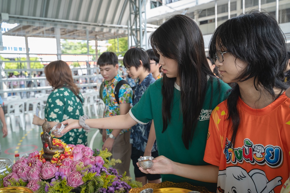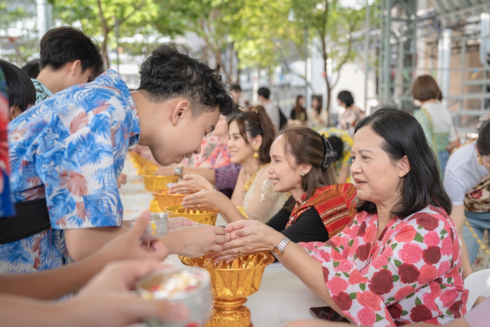 From the lively sounds of the Songkran orchestra to the elegance of Thai folk dance, the spirit of Thai culture was everywhere. Students also took part in the meaningful tradition of gently pouring water on teachers as a blessing for the Thai New Year.