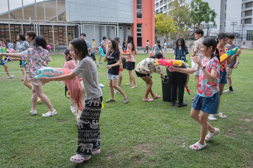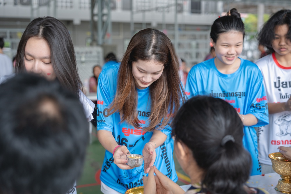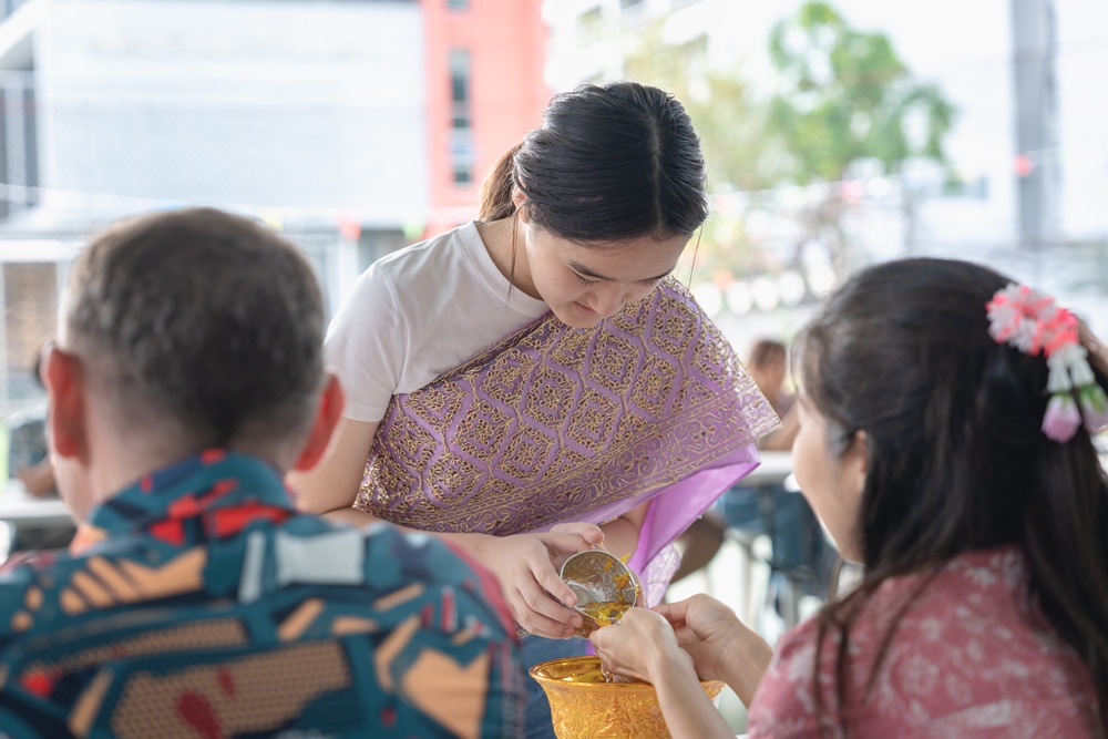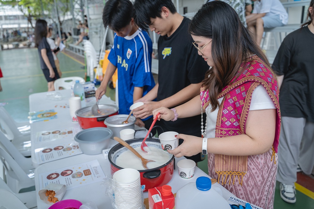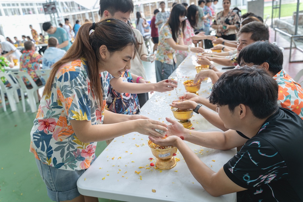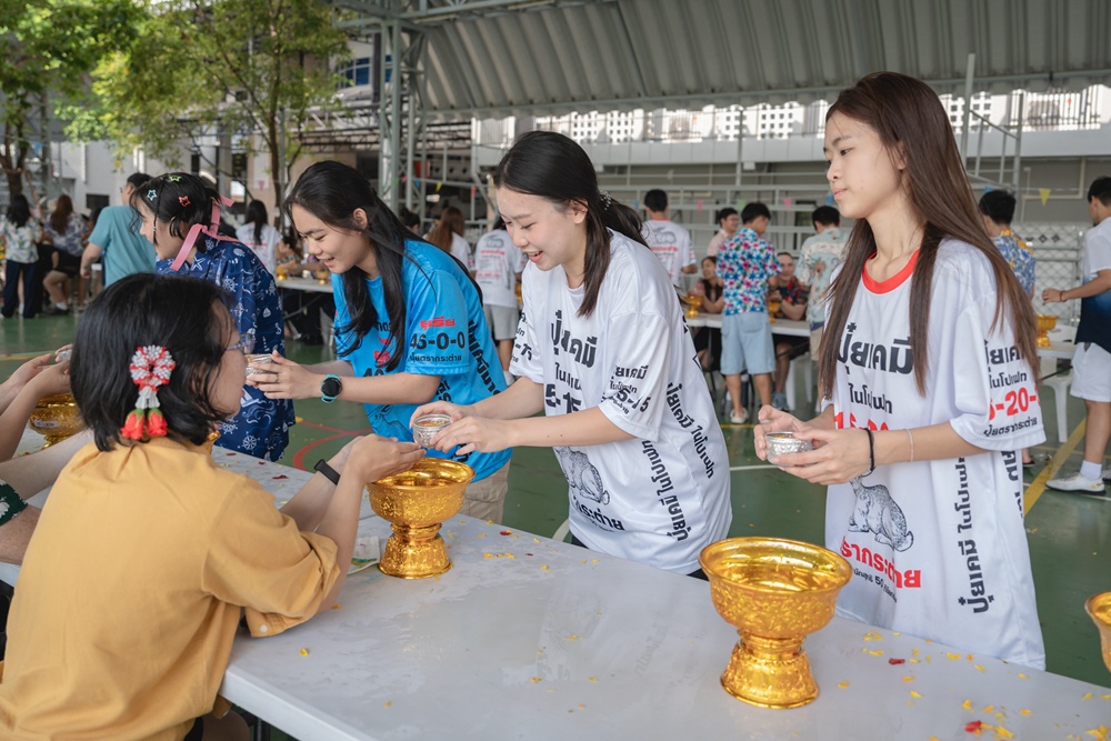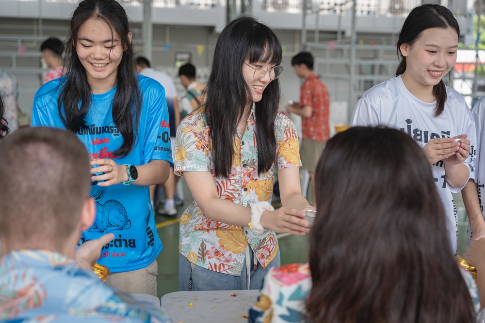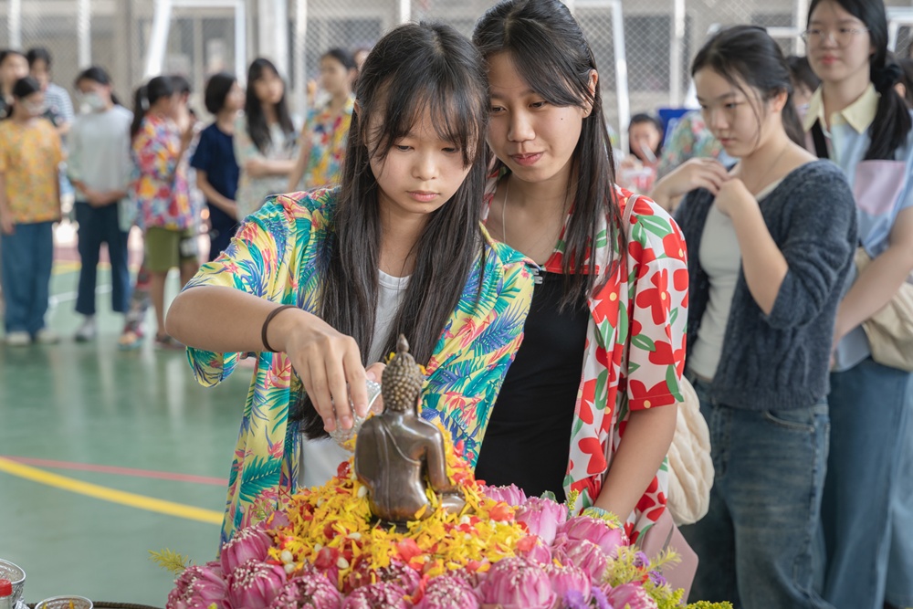 From the lively sounds of the Songkran orchestra to the elegance of Thai folk dance, the spirit of Thai culture was everywhere. Students also took part in the meaningful tradition of gently pouring water on teachers as a blessing for the Thai New Year.
