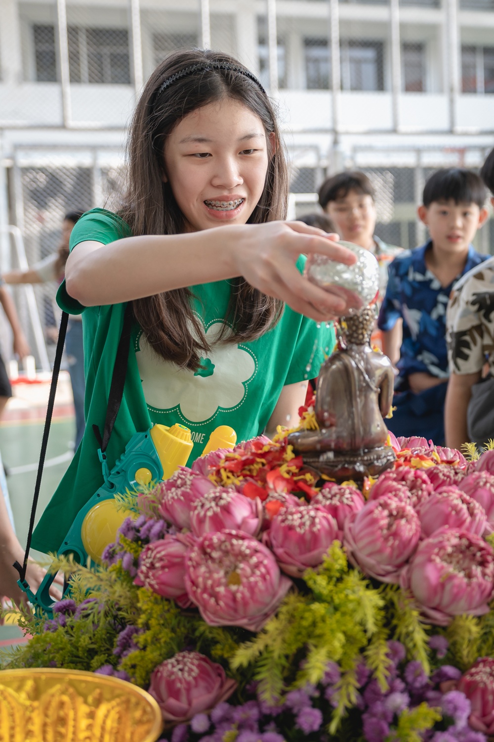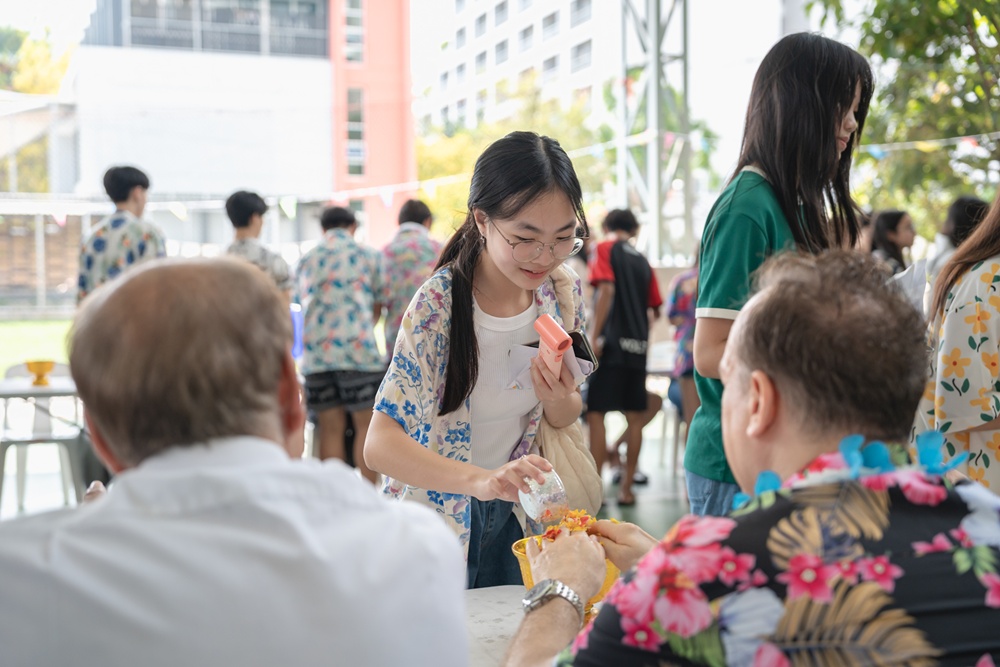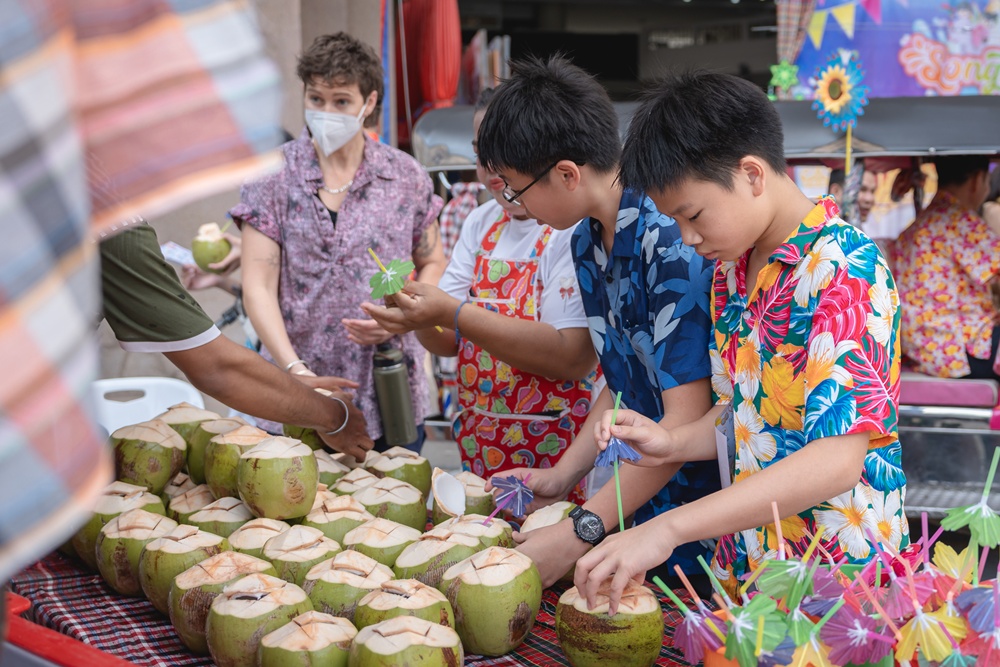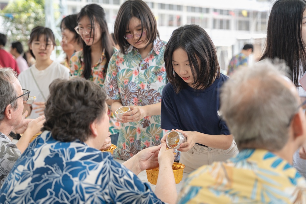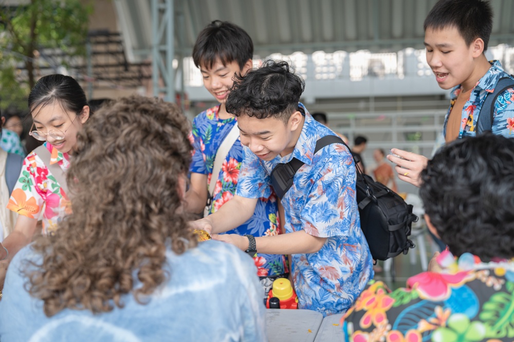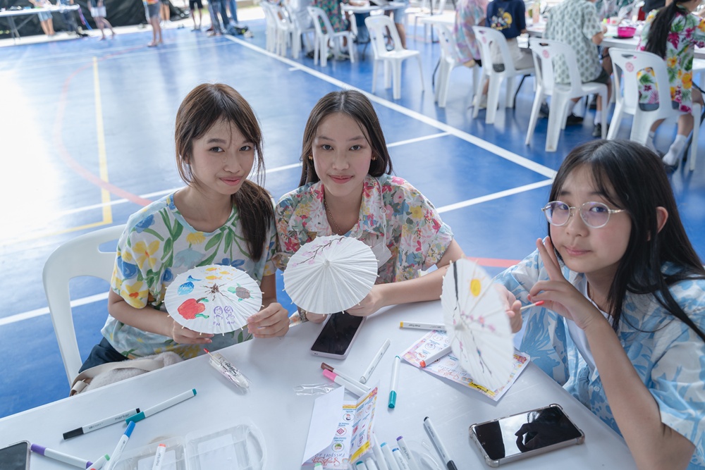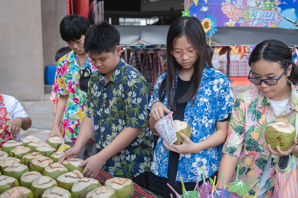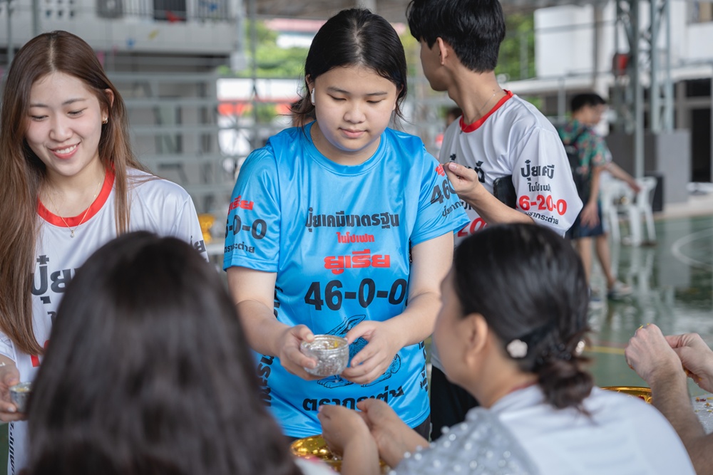 From the lively sounds of the Songkran orchestra to the elegance of Thai folk dance, the spirit of Thai culture was everywhere. Students also took part in the meaningful tradition of gently pouring water on teachers as a blessing for the Thai New Year.