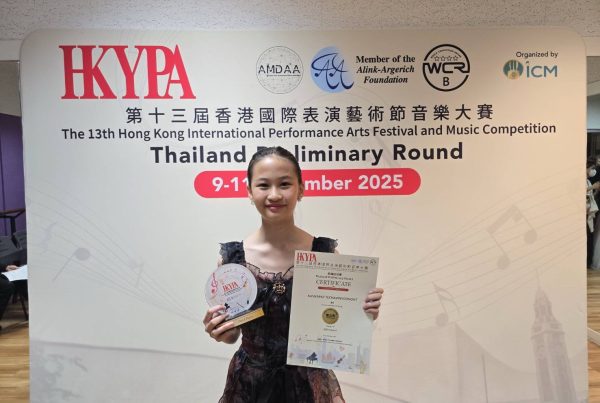 Dhee (Dheeraj Khumprapan), from Year 8, advances to the Piano competition in Hong Kong!